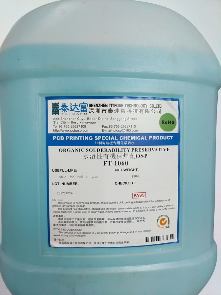 主頁 > 產(chǎn)品展示 > OSP藥水系列 > 水溶性有機(jī)保焊劑FT-1060